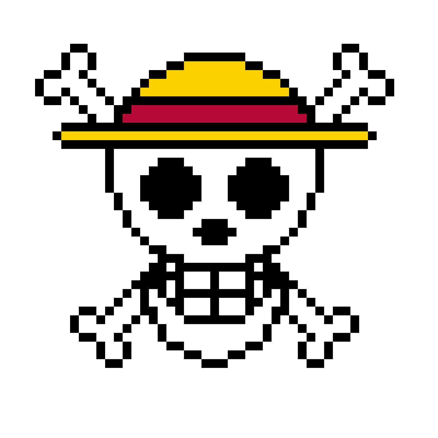 Luffys karaktäristiska piratskalle med halmhat – flaggsymbolen for Straw Hat Pirates – i 2.6mm minipärlor.