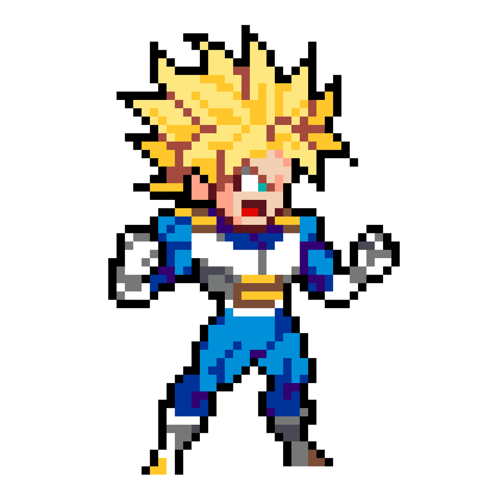 Trunkssonen till Vegeta och Bulma, arvtagare till Saiyajinernas stolthet och Briefs ingenjorarv. Bade som ung pojke och framtidshjalte ar Trunks en omtyckt karaktär. Design pa 2×2 plattor i 5 mm standardparlor med 972 parlor.